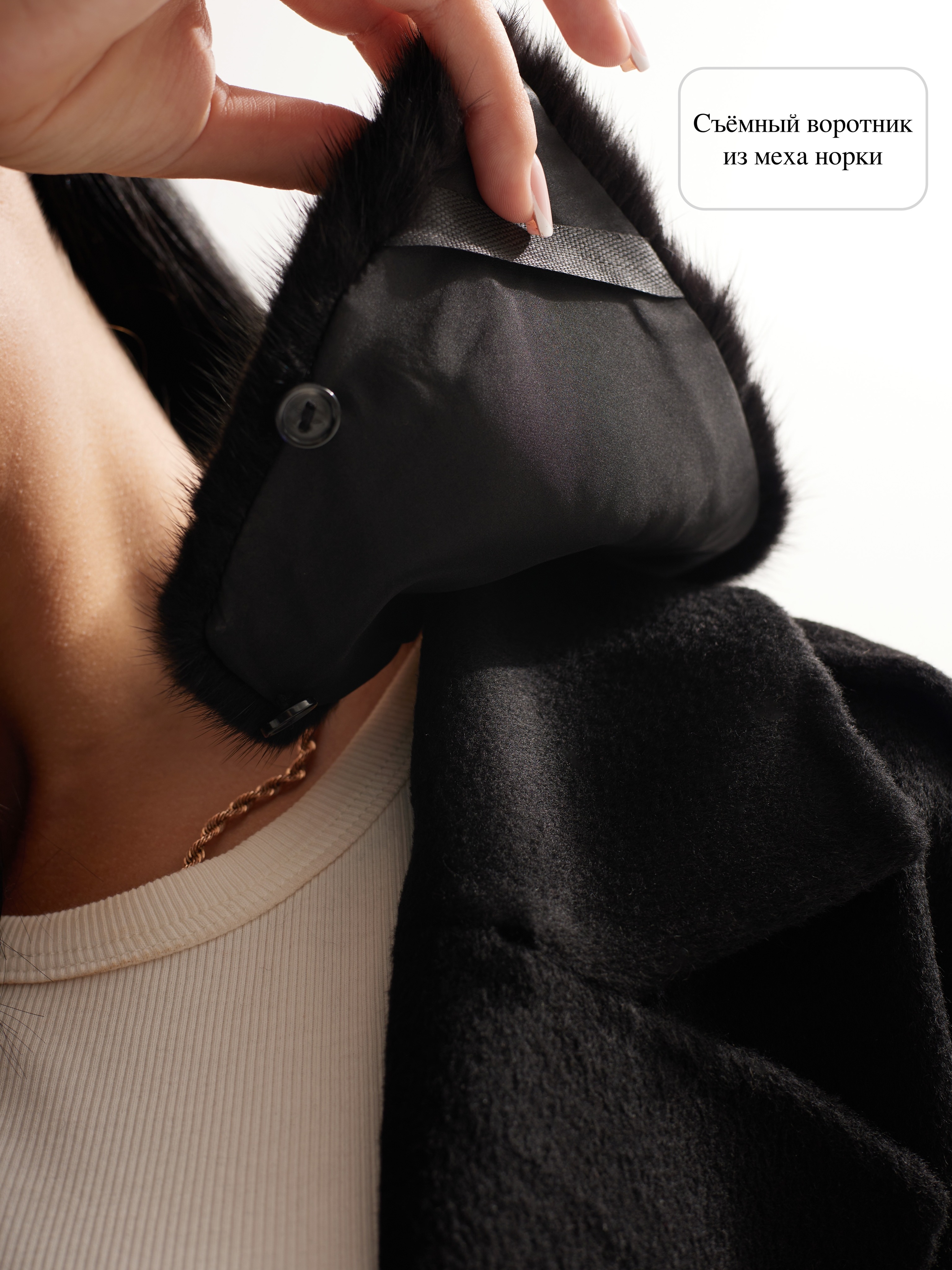 Изюминка модели - воротник из меха подчеркнет вашу внешность. Его мягкость, пушистость и блеск придают образу элегантность.