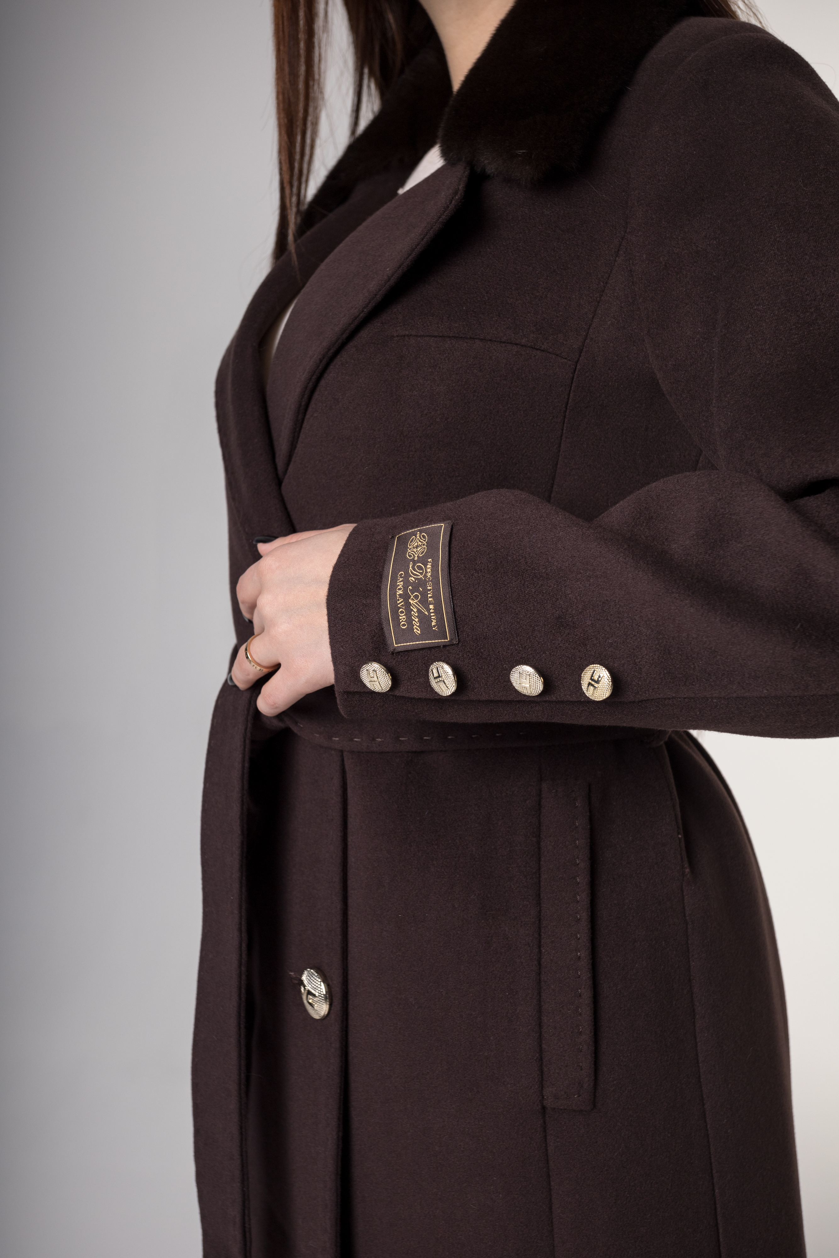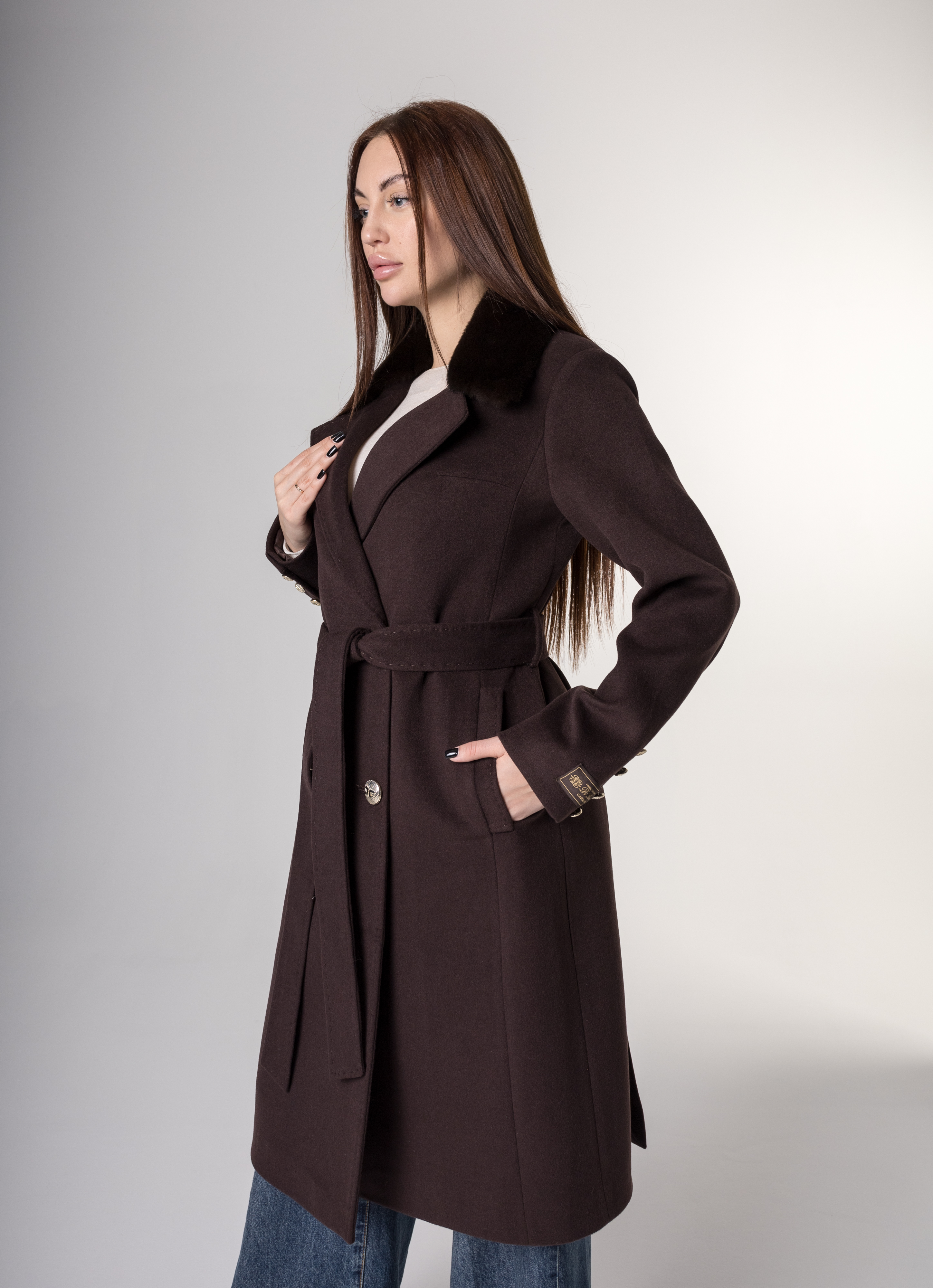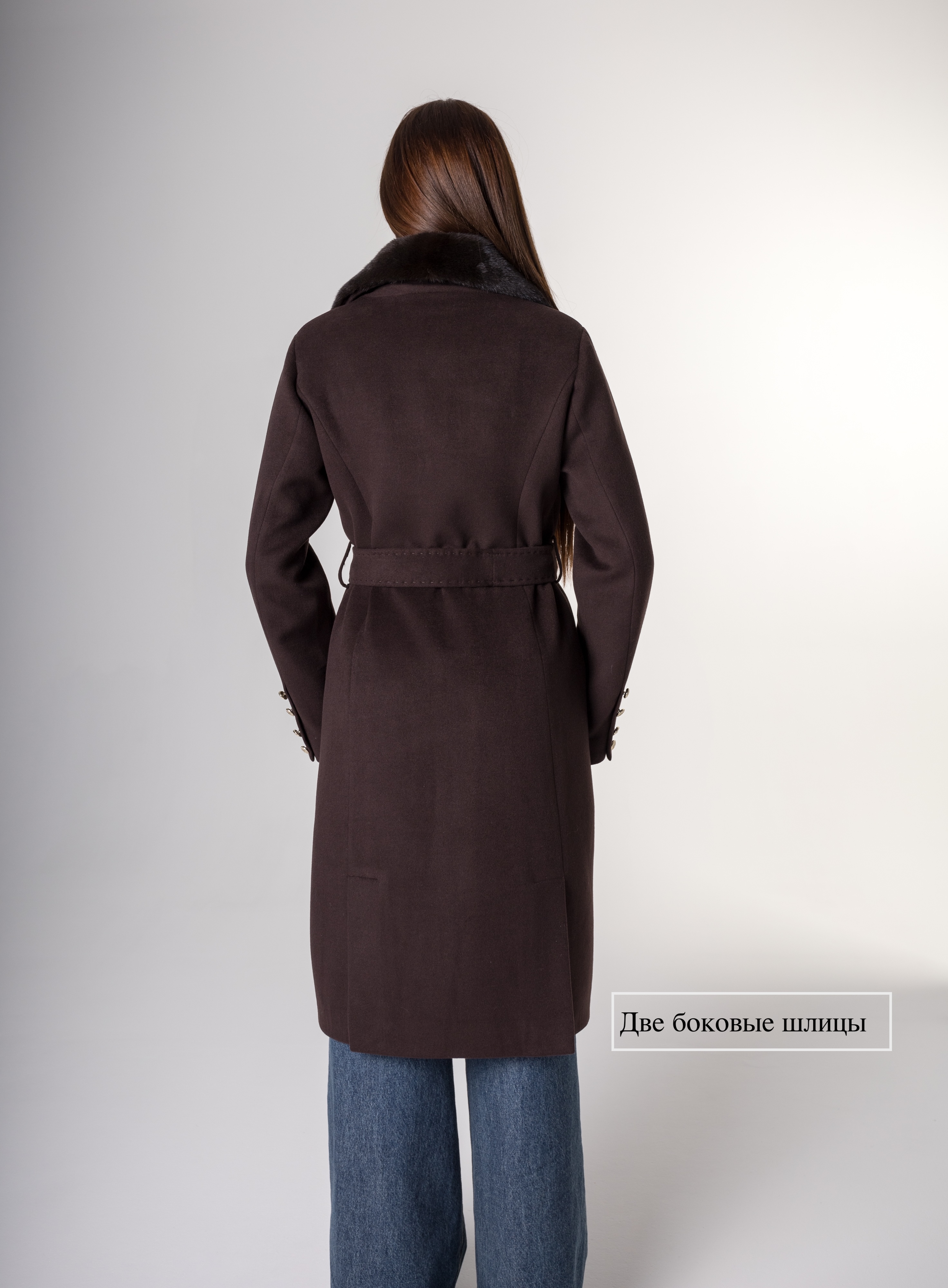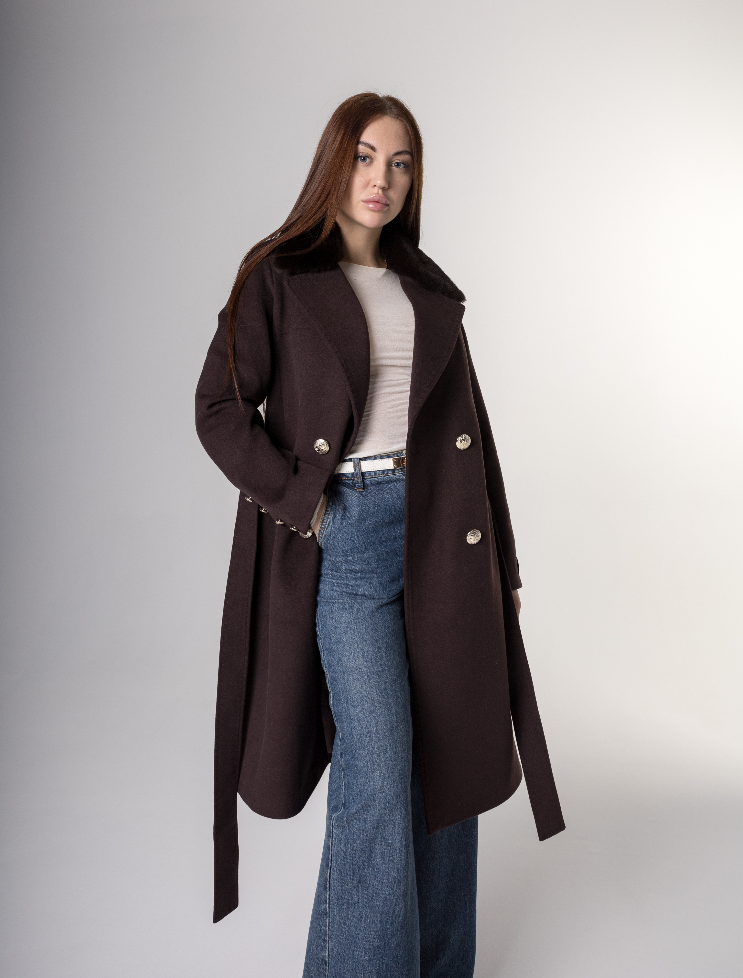 Демисезонное двубортное пальто классического кроя с английским воротником.