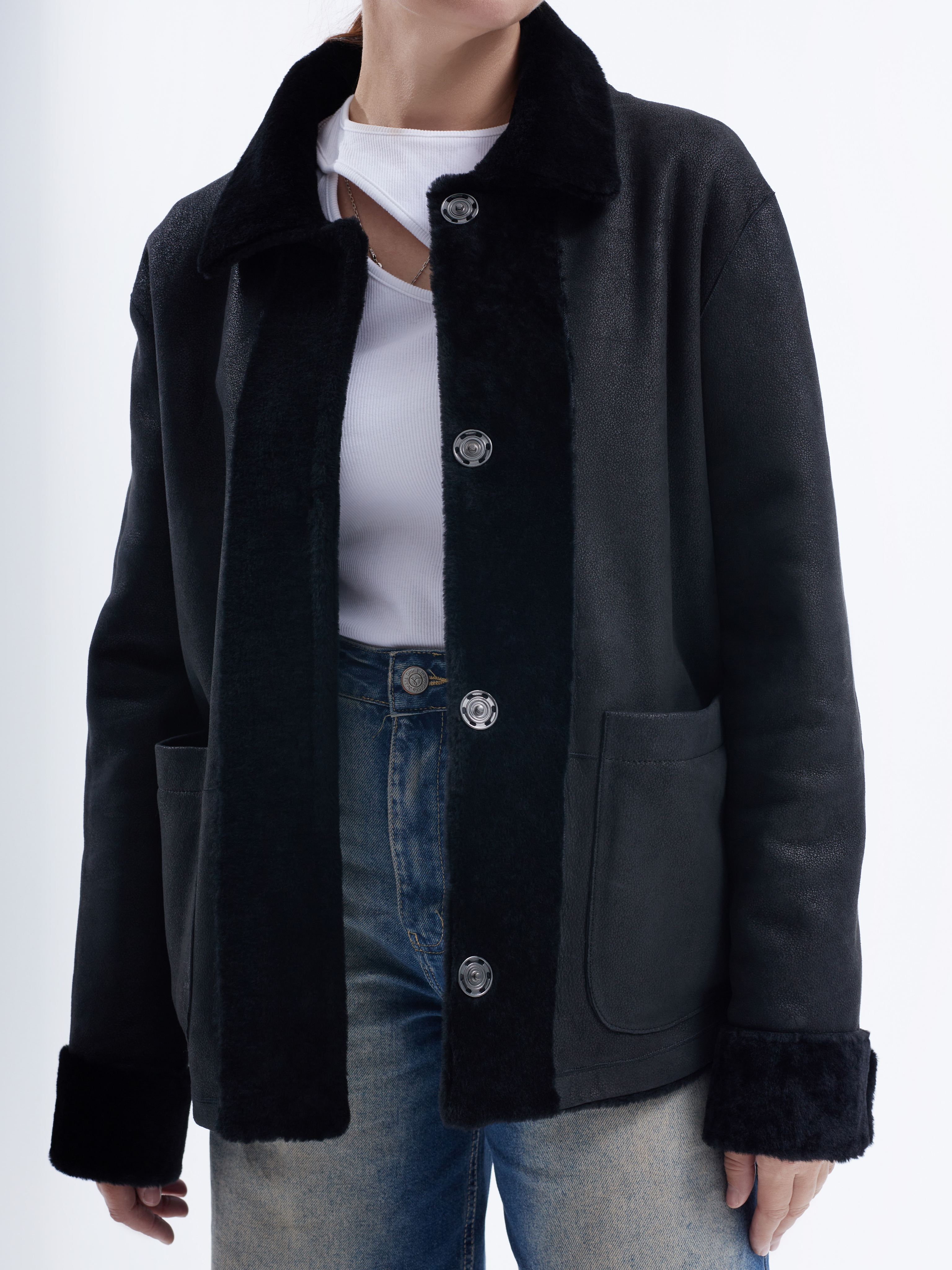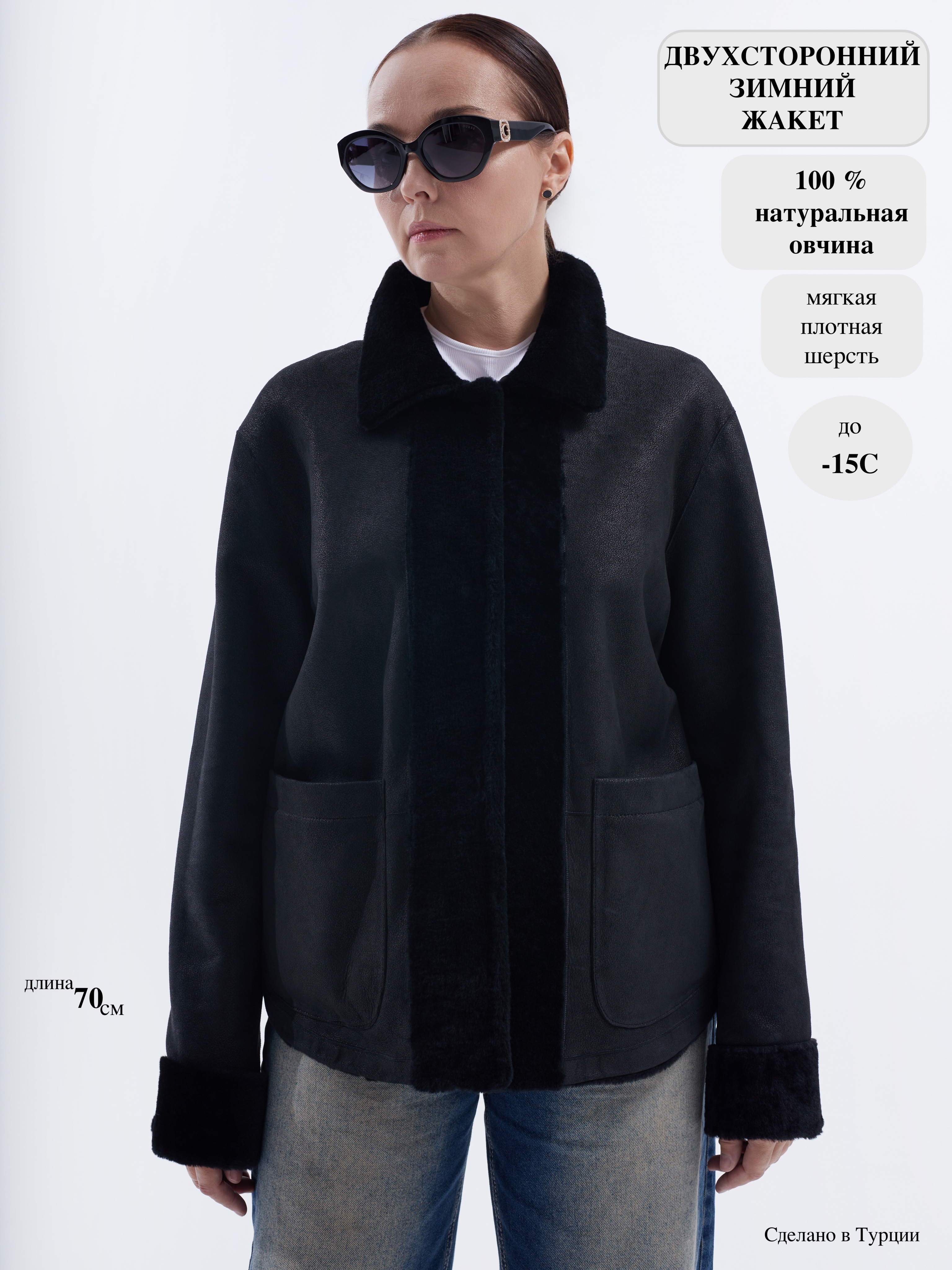 Откройте для себя женственный жакет-двухфейс от NEWBLUE – новинка сезона! Изготовленный из мягкой натуральной овчины (100%), он сочетает практичность и стильный дизайн. Модель-рубашка с удобными накладными карманами и аккуратными кнопками станет незаменимой частью вашего зимнего гардероба. Турецкое производство гарантирует высокое качество изделия и его соответствие модным трендам. Женская дублёнка NEWBLUE – ваш идеальный спутник зимой!