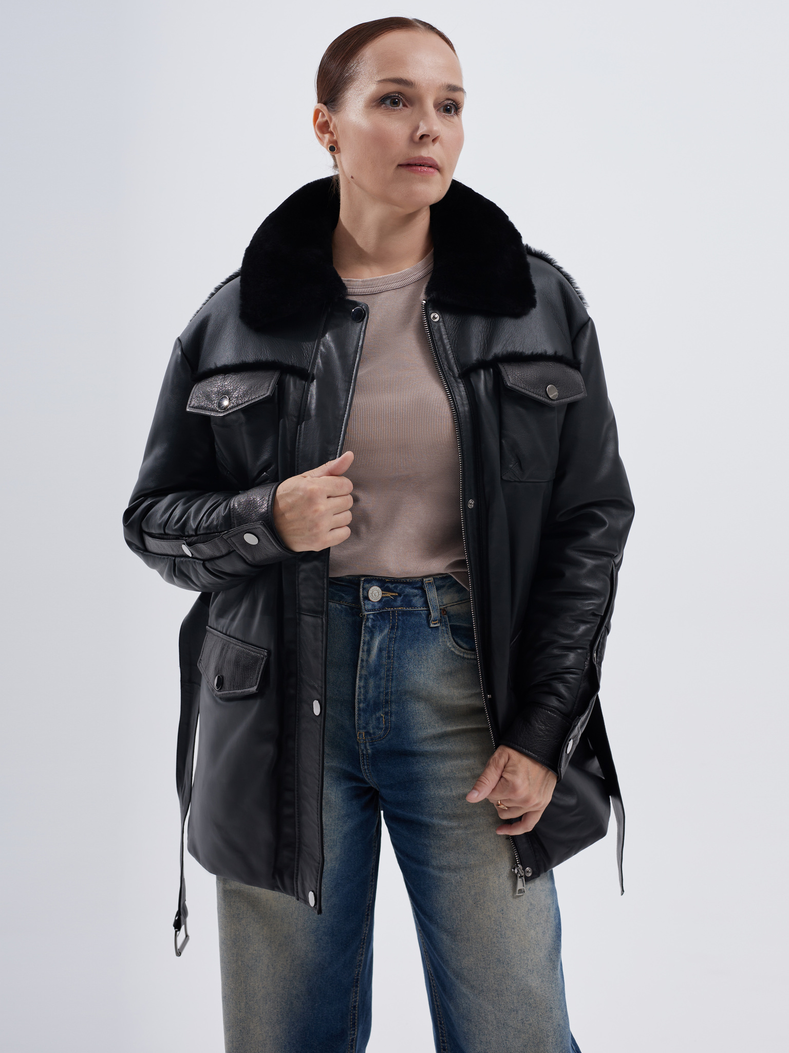 Модель в стиле рубашки украшена элегантными накладными карманами на груди. Супер мягкая кожа и качественная фурнитура- это идеальный выбор для зимы: сочетание изысканного дизайна, комфорта и тепла турецкого качества.