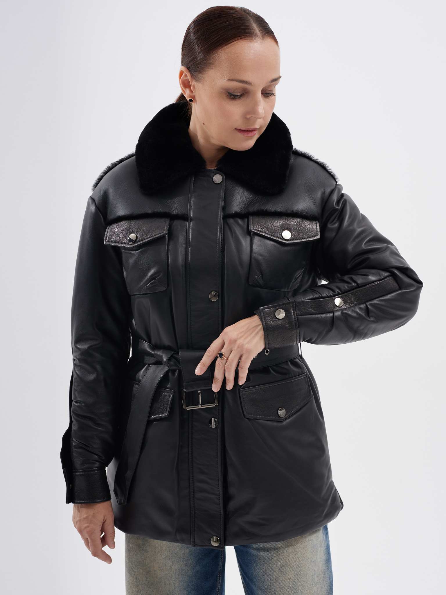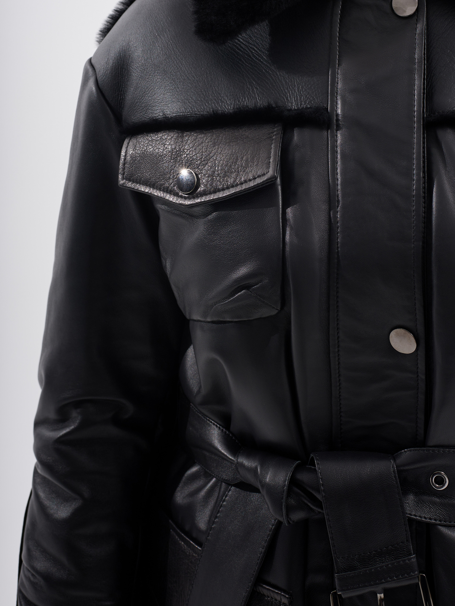 Представляем новинку от бренда NEWBLUE – стильный пуховик из натуральной кожи с уютной отделкой из чистой овечьей шерсти!