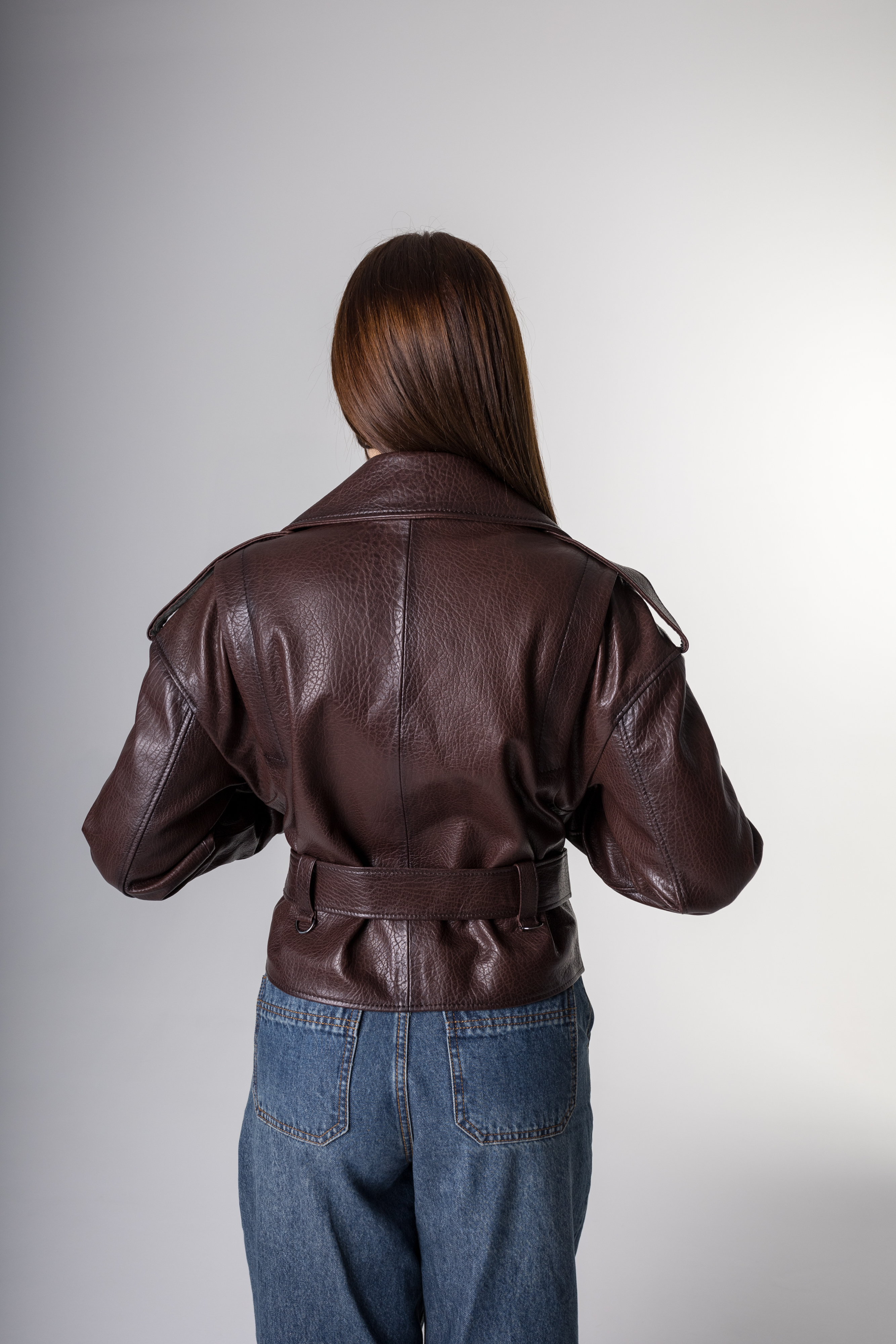 Косуха из натуральной овечьей кожи. Тип выделки кожи «Джумбо» (Jumbo) это мягкая и эластичная кожа с выразительной натуральной фактурой. Куртка коричневого цвета — стильный выбор для вашего гардероба. Регулируемая длина рукавов посредством манжеты позволяет адаптироваться к любым погодным условиям и создать идеальный образ благодаря точной подгонке изделия. Просторный крой подчеркивает свободу движения, а качественная обработка материала гарантирует продолжительный срок службы. Воплотите свои модные идеи вместе со стилем и удобством от VIVA DOLCE VITA. Куртка станет вашим лучшим другом при создании образов, идеально подойдет как для прогулок по городу, так и вечерних выходов.