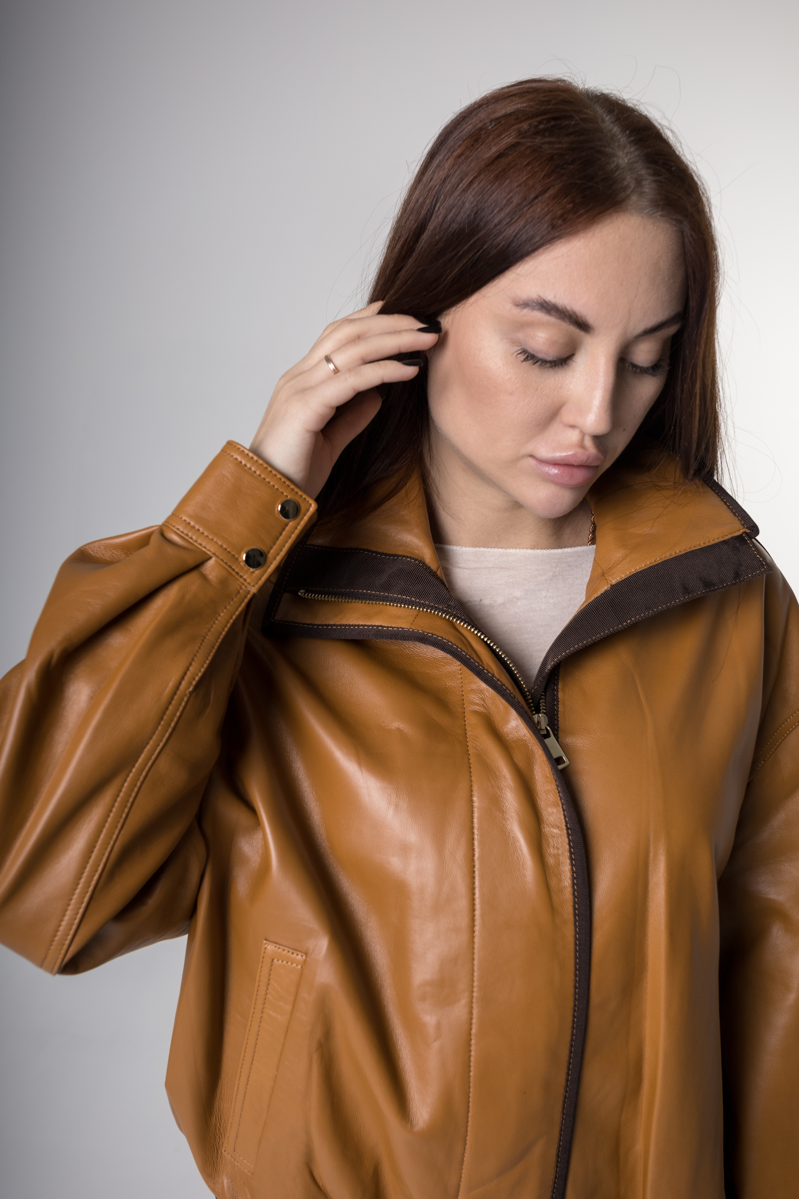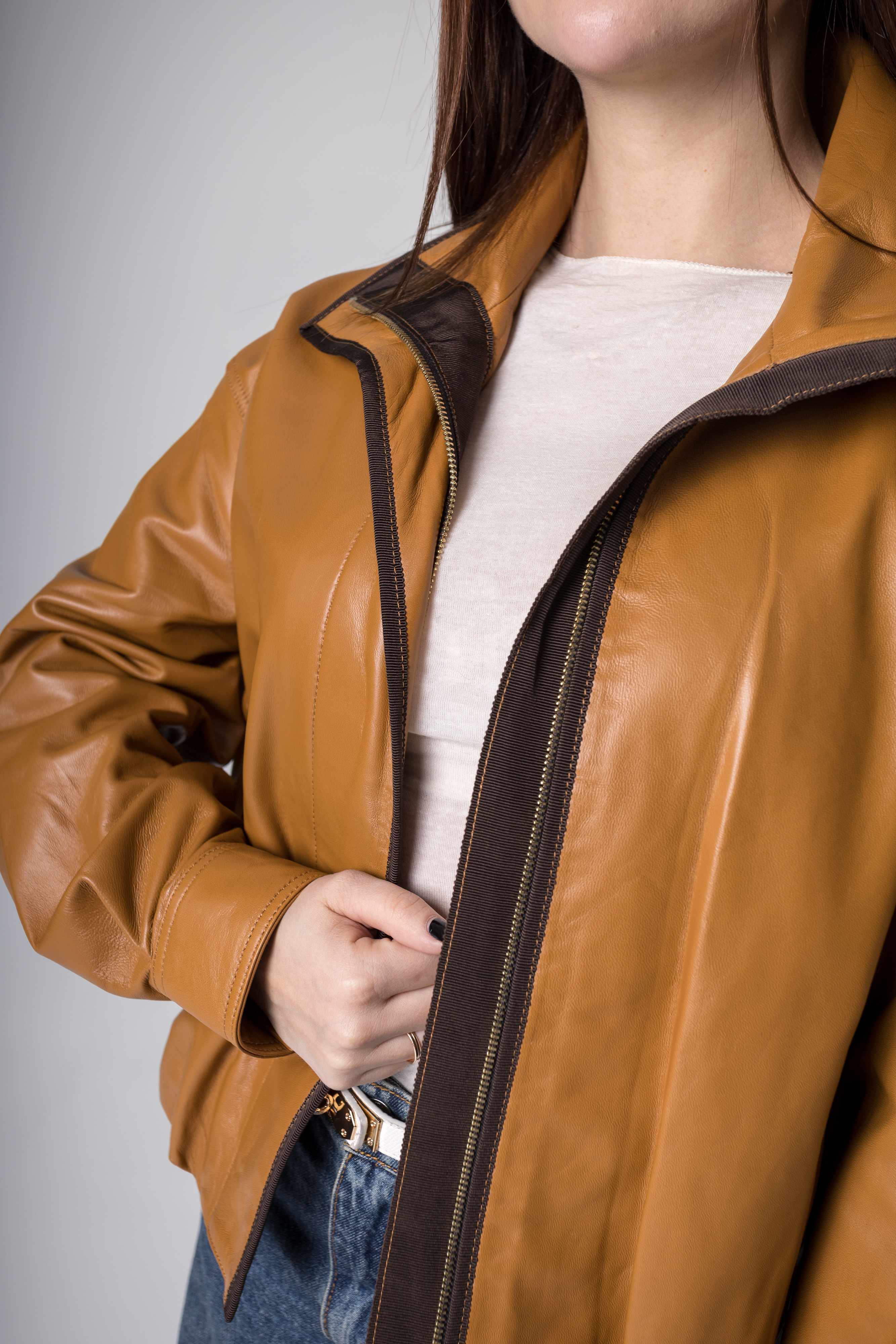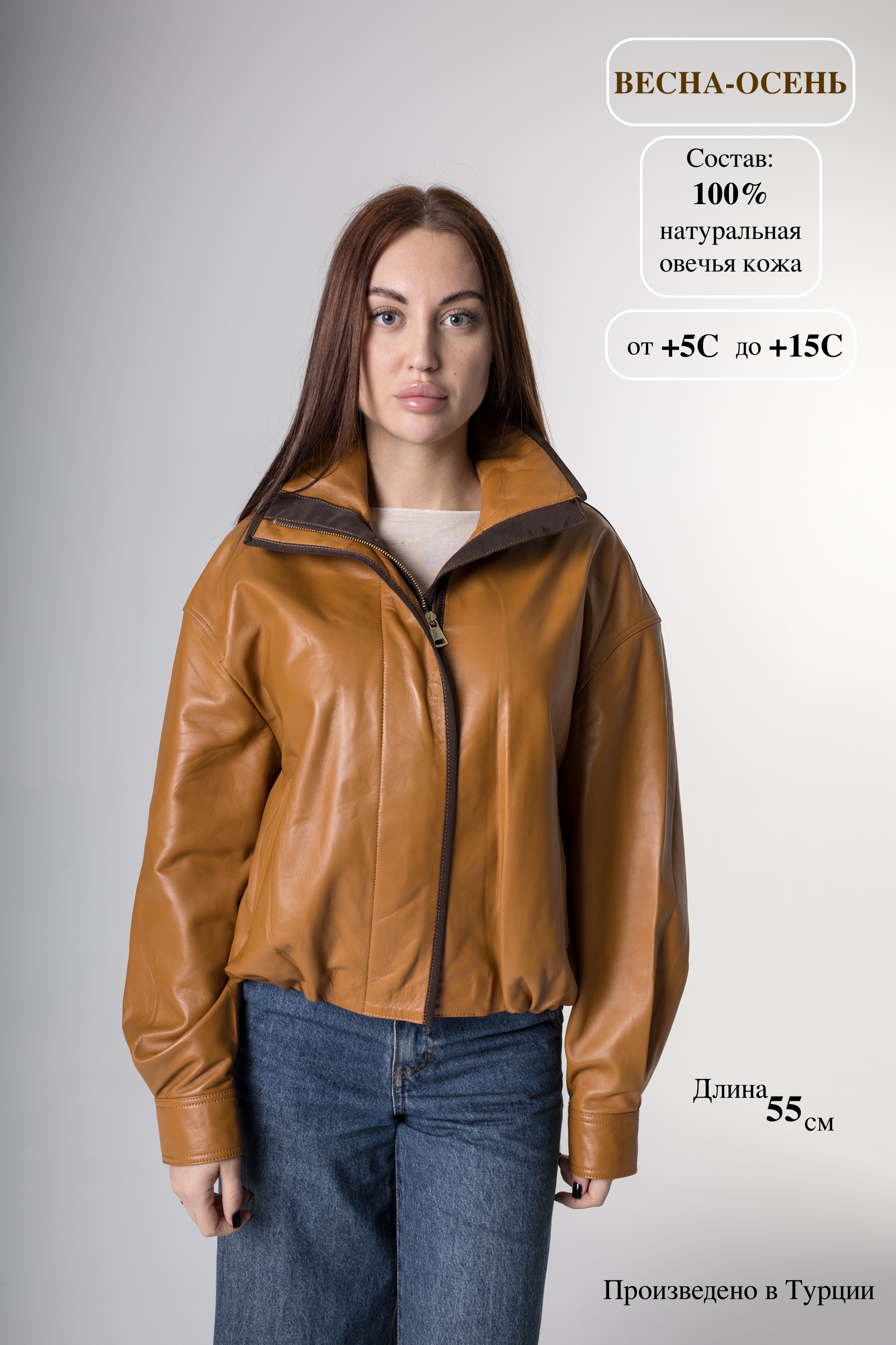 Откройте для себя мягкую теплоту натурального света коричневой кожаной курточки NEWBLUE! Воротник-стойка защищает шею, молния дополнена удобной ветрозащитной планкой, придающей дополнительную практичность. Манжеты рубашечного покроя элегантно фиксируются кнопками, придавая завершенность образу. Присборенный низ выгодно подчеркивает фигуру, добавляя женственности и шарма. Эта уникальная модель идеально впишется в ваш гардероб, став акцентом вашего стиля. Компактный дизайн и качественные материалы делают его универсальным спутником в ежедневных приключениях. Такая модель станет незаменимой частью гардероба современной женщины, подчеркивая её индивидуальность и безупречный вкус.