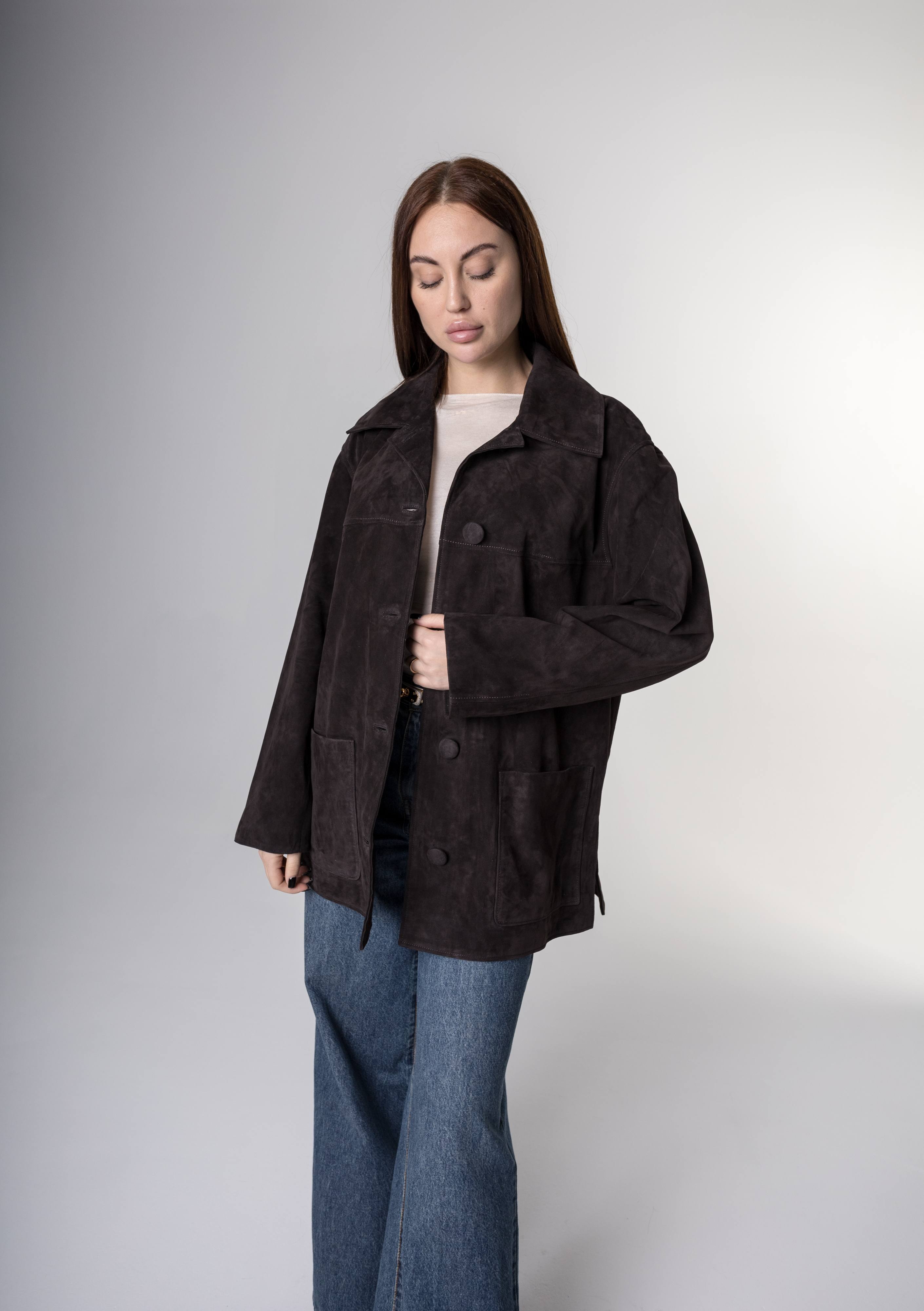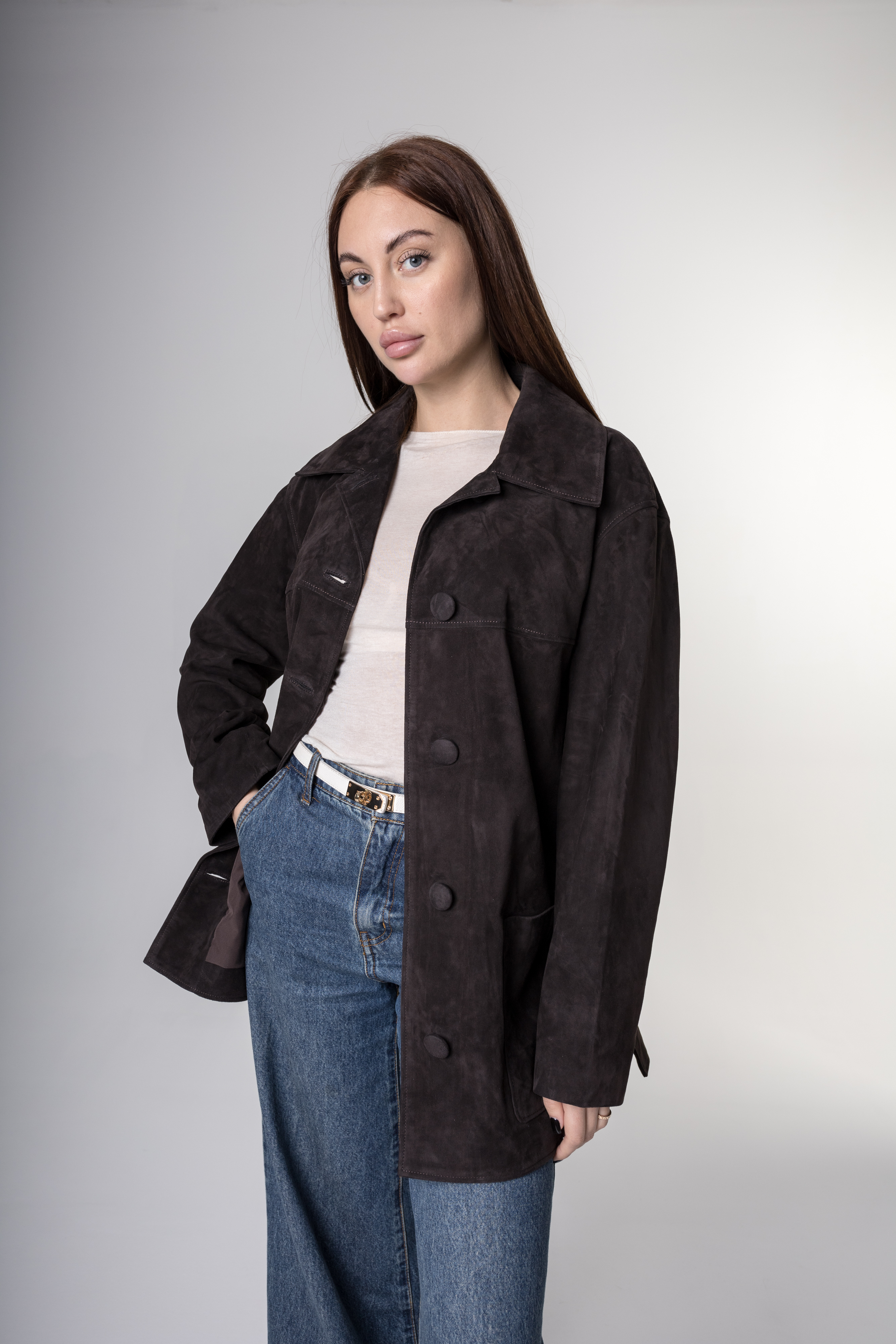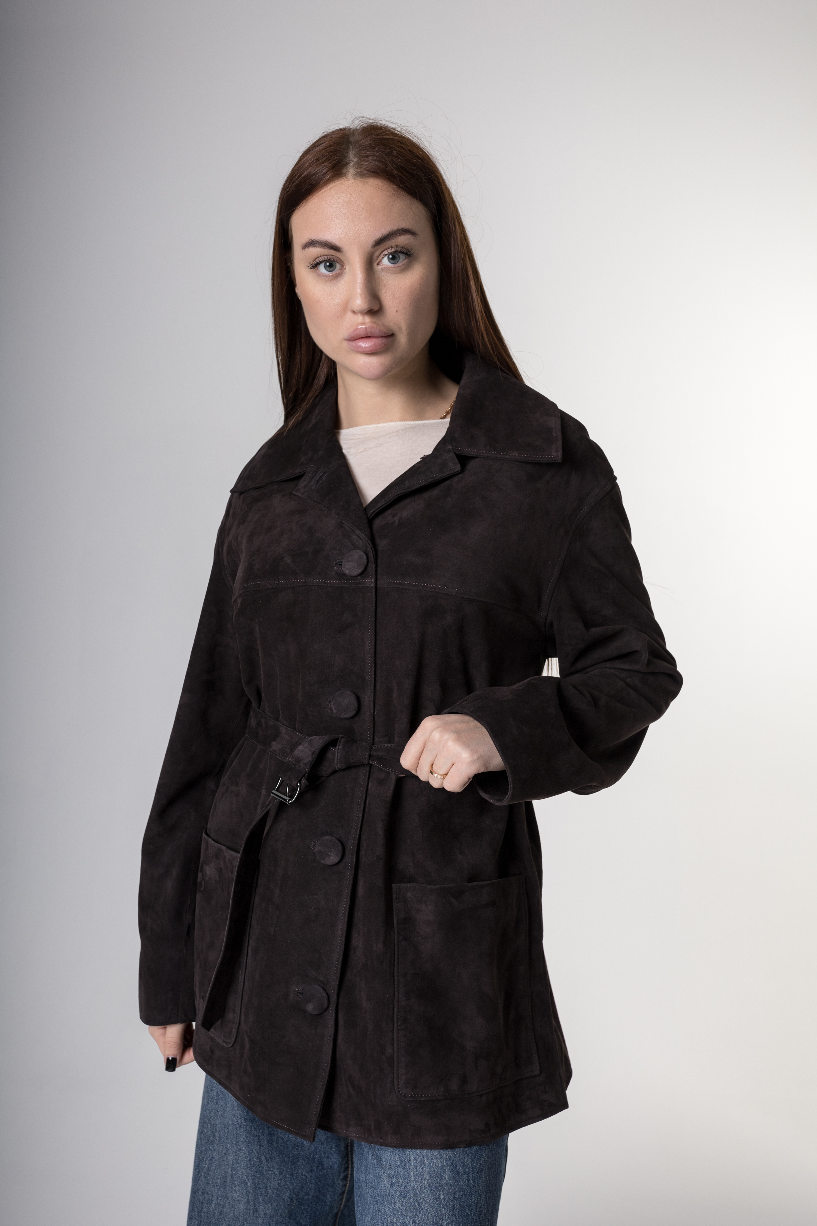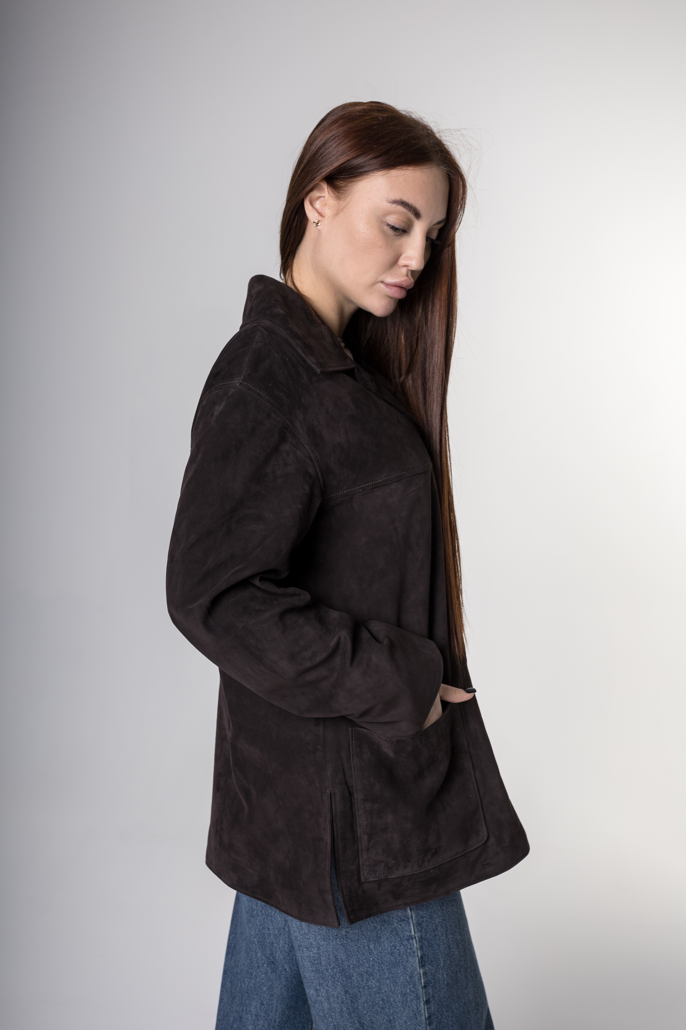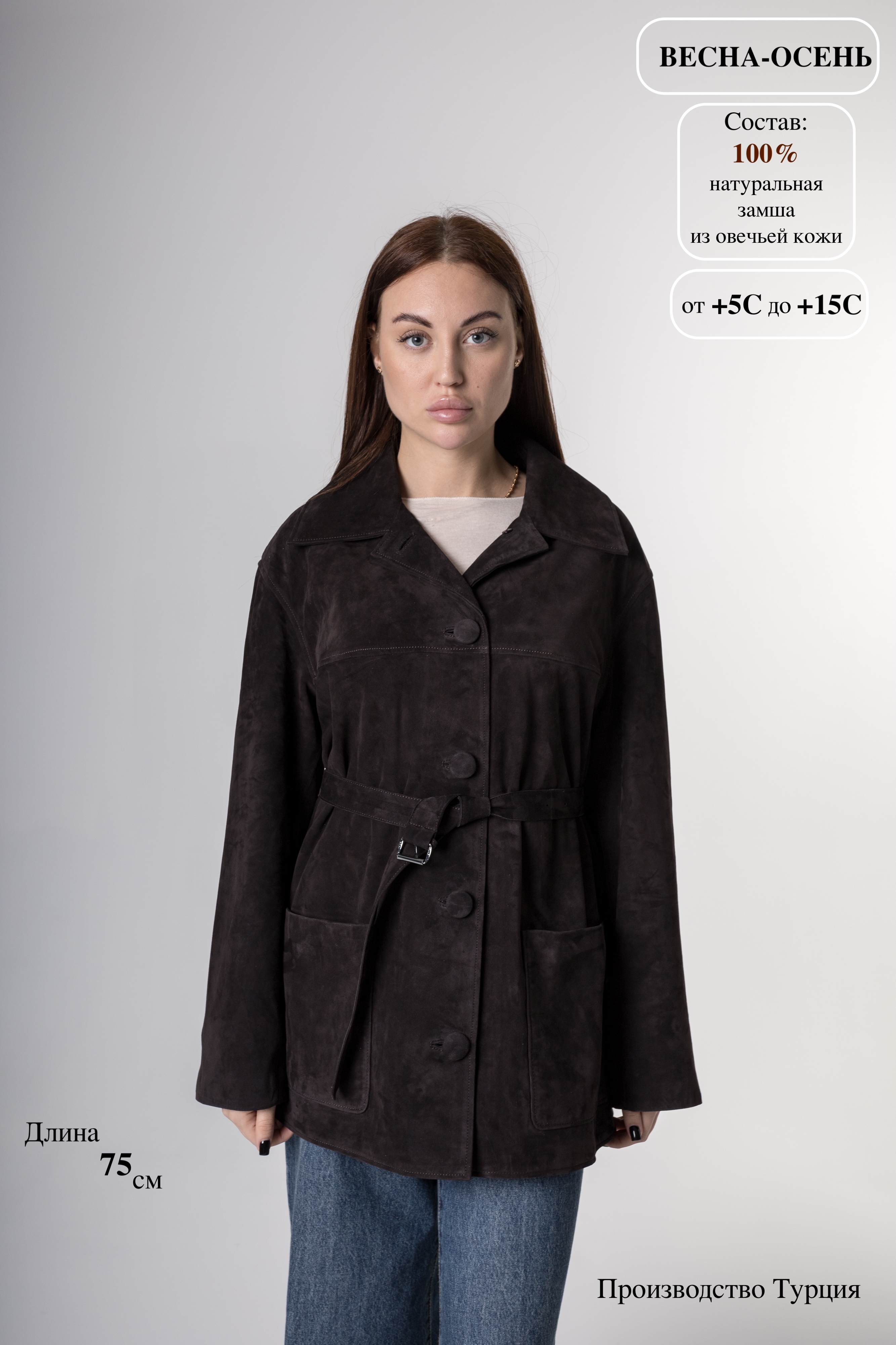 Рубашка из благородной натуральной замши шоколадного оттенка – идеальный выбор для ценительниц комфорта и стиля! Длиной 75 см, она идеально подчеркивает фигуру благодаря наличию эластичного пояса. Накладные карманы добавляют удобства и изысканности, а пуговицы делает ее универсальной вещью гардероба.