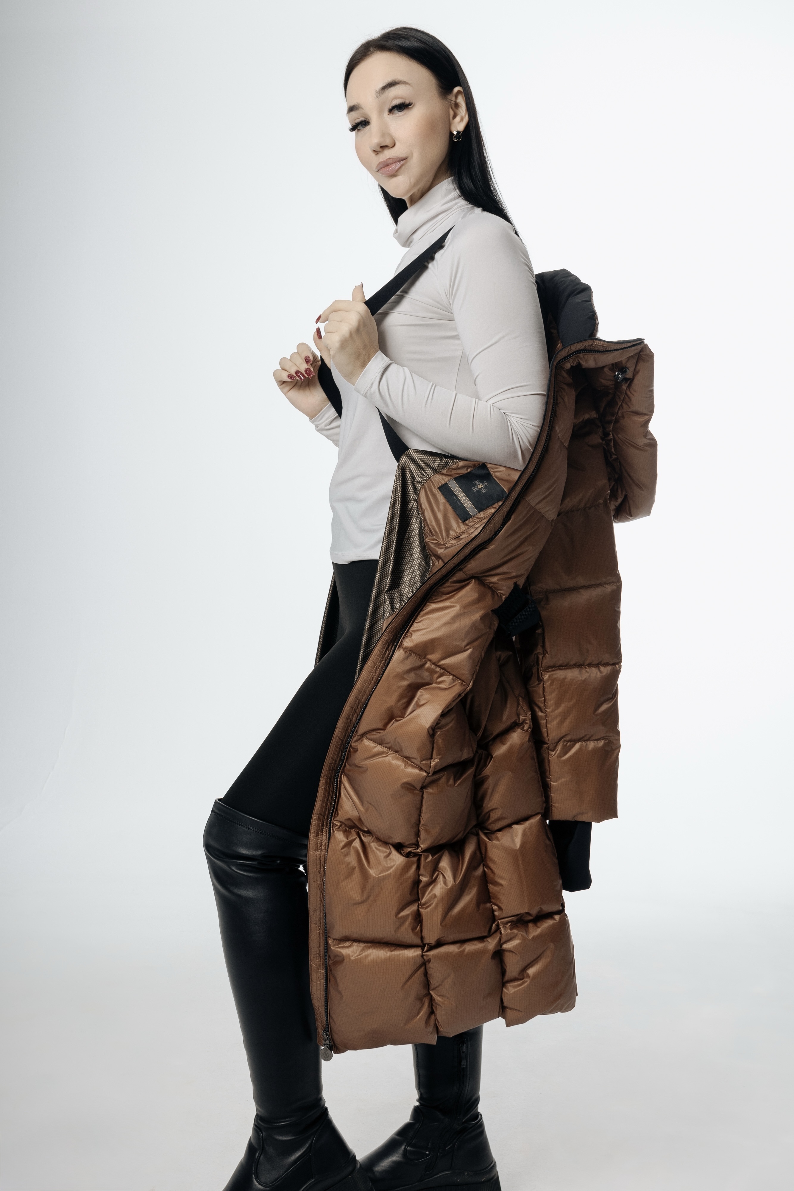 Погрузитесь в атмосферу тепла и комфорта с женским удлиненным приталенным пуховиком бренда Torriss.