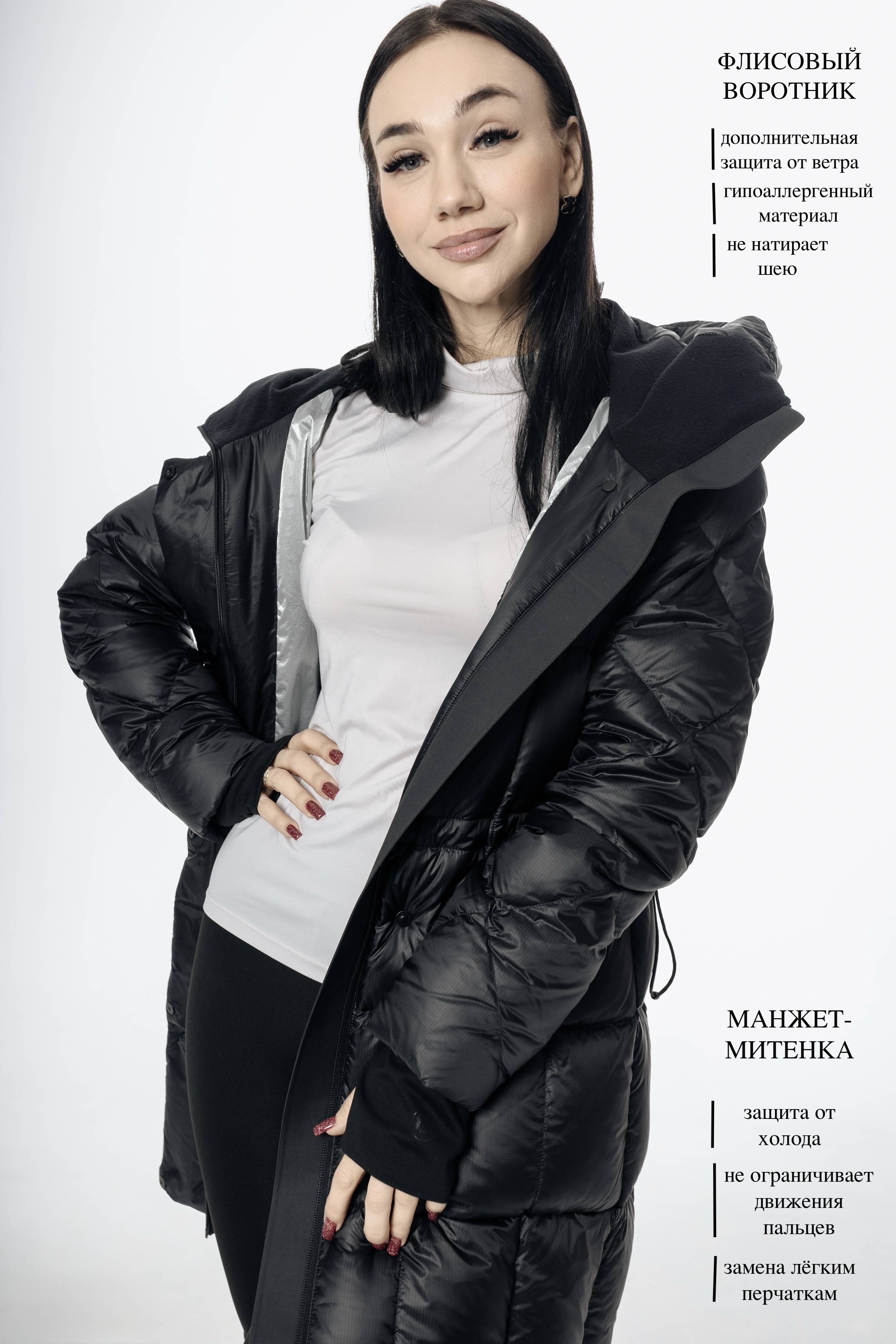 Покупая данный пуховик, вы выбираете надежность, тепло и стиль на весь сезон. Черный цвет, длина 90 см и стильный приталенный крой подчеркнут вашу индивидуальность и создадут образ уверенной женщины. Внешняя ветрозащитная планка на кнопках, манжеты-ментенки и регулировка талии кулиской обеспечат комфорт даже в самую холодную погоду. Высококачественный нейлон верха и подклада, а также натуральный наполнитель из 95% гусиного пуха гарантируют тепло, сухость и долговечность изделия.Погрузитесь в атмосферу тепла и комфорта с женским удлиненным приталенным пуховиком бренда Torriss.