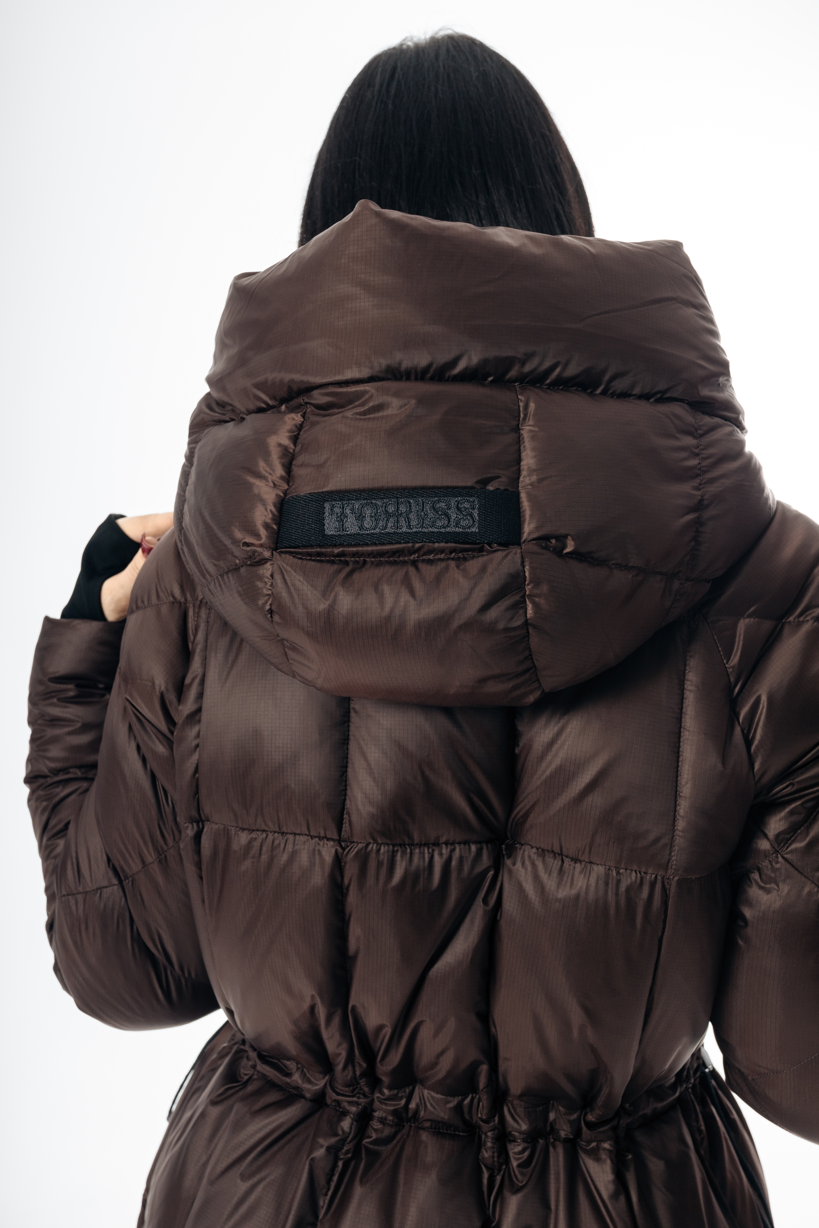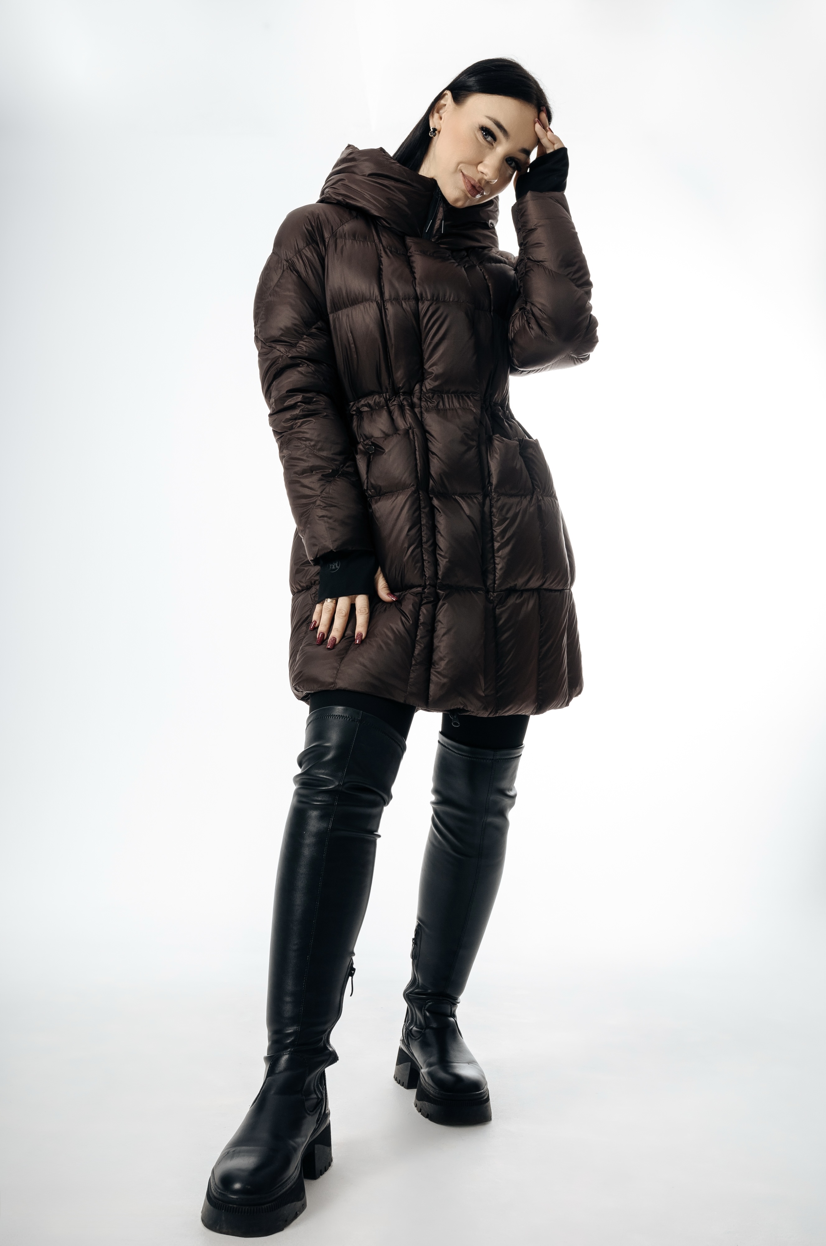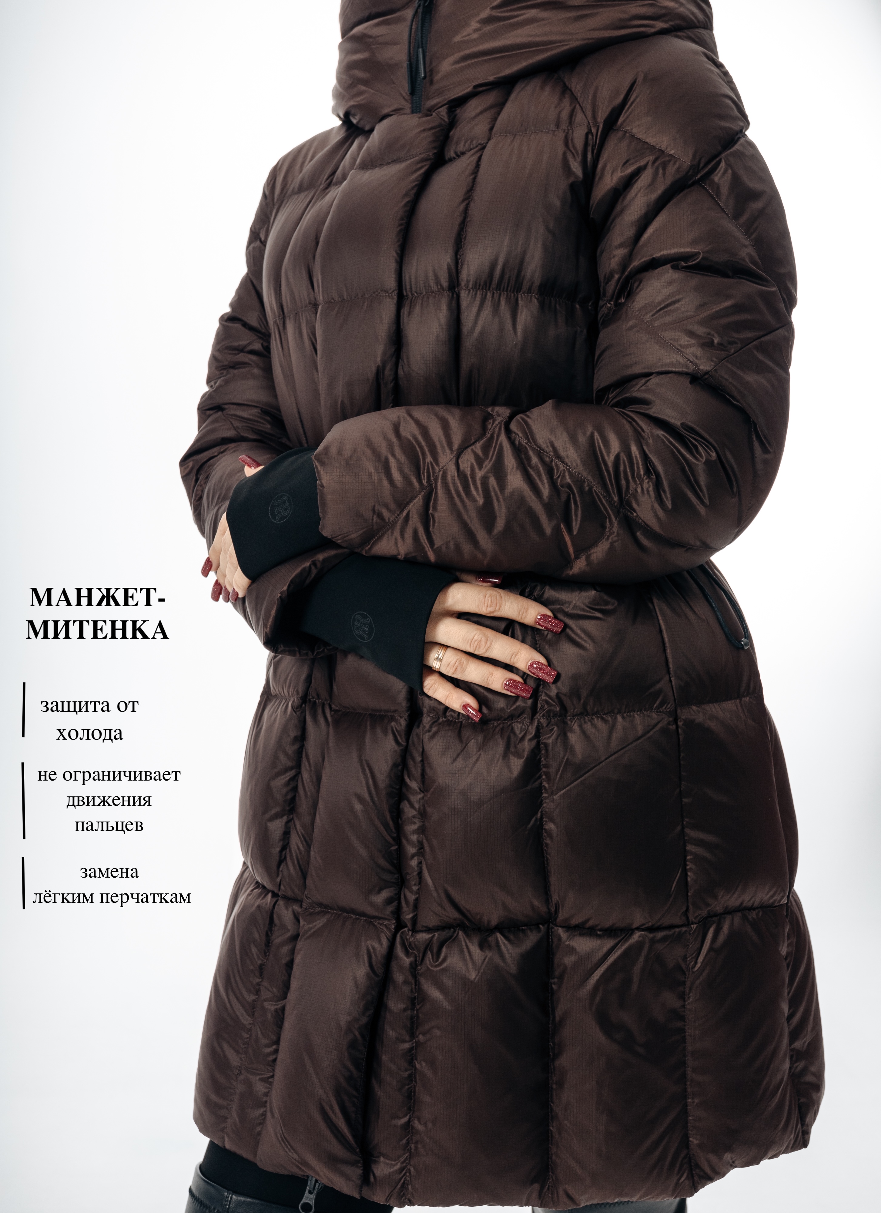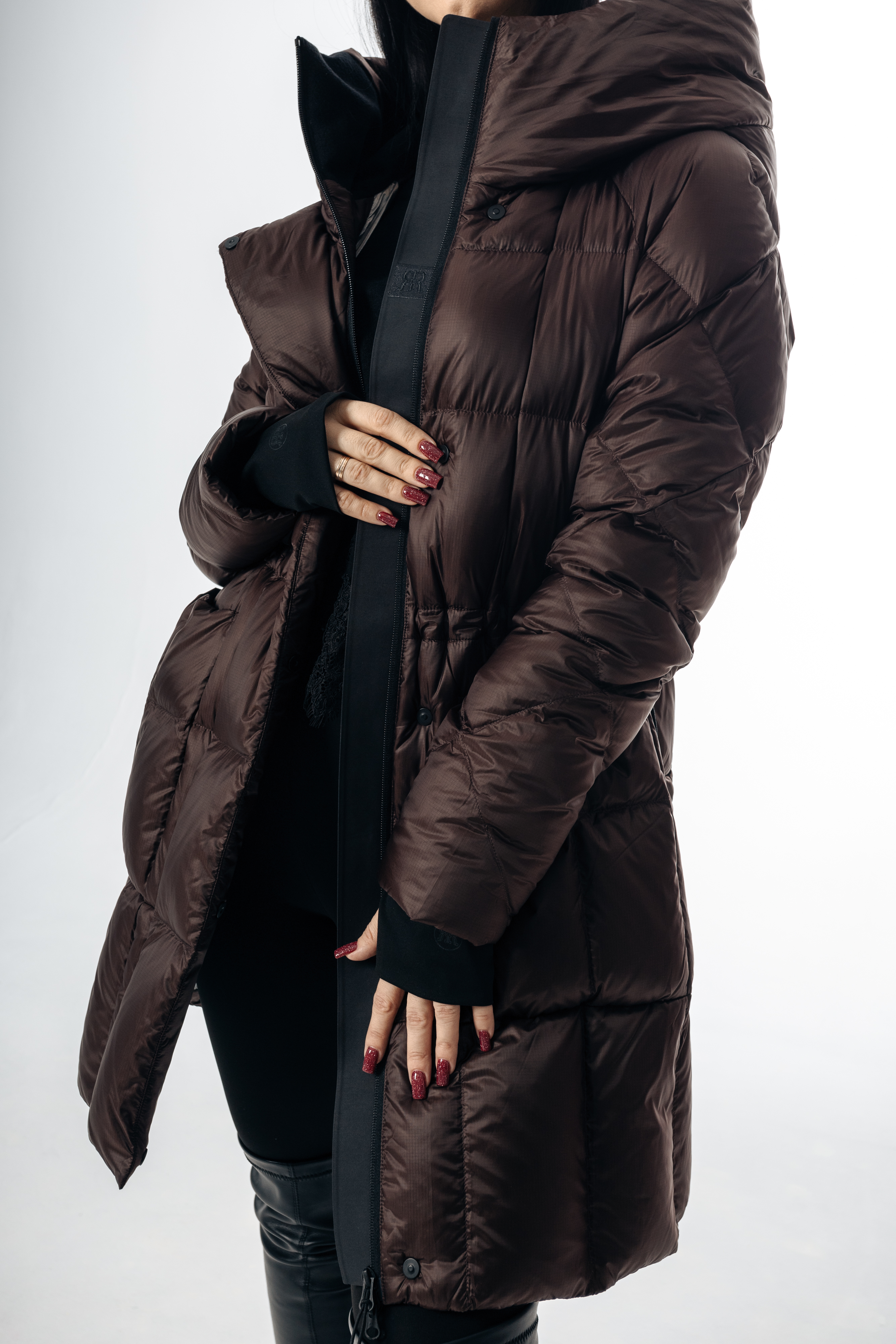 Покупая данный пуховик, вы выбираете надежность, тепло и стиль на весь сезон. Шоколадный цвет, длина 90 см и стильный приталенный крой подчеркнут вашу индивидуальность и создадут образ уверенной женщины. Внешняя ветрозащитная планка на кнопках, манжеты-ментенки и регулировка талии кулиской обеспечат комфорт даже в самую холодную погоду. Высококачественный нейлон верха и подклада, а также натуральный наполнитель из 95% гусиного пуха гарантируют тепло, сухость и долговечность изделия.Погрузитесь в атмосферу тепла и комфорта с женским удлиненным приталенным пуховиком бренда Torriss.